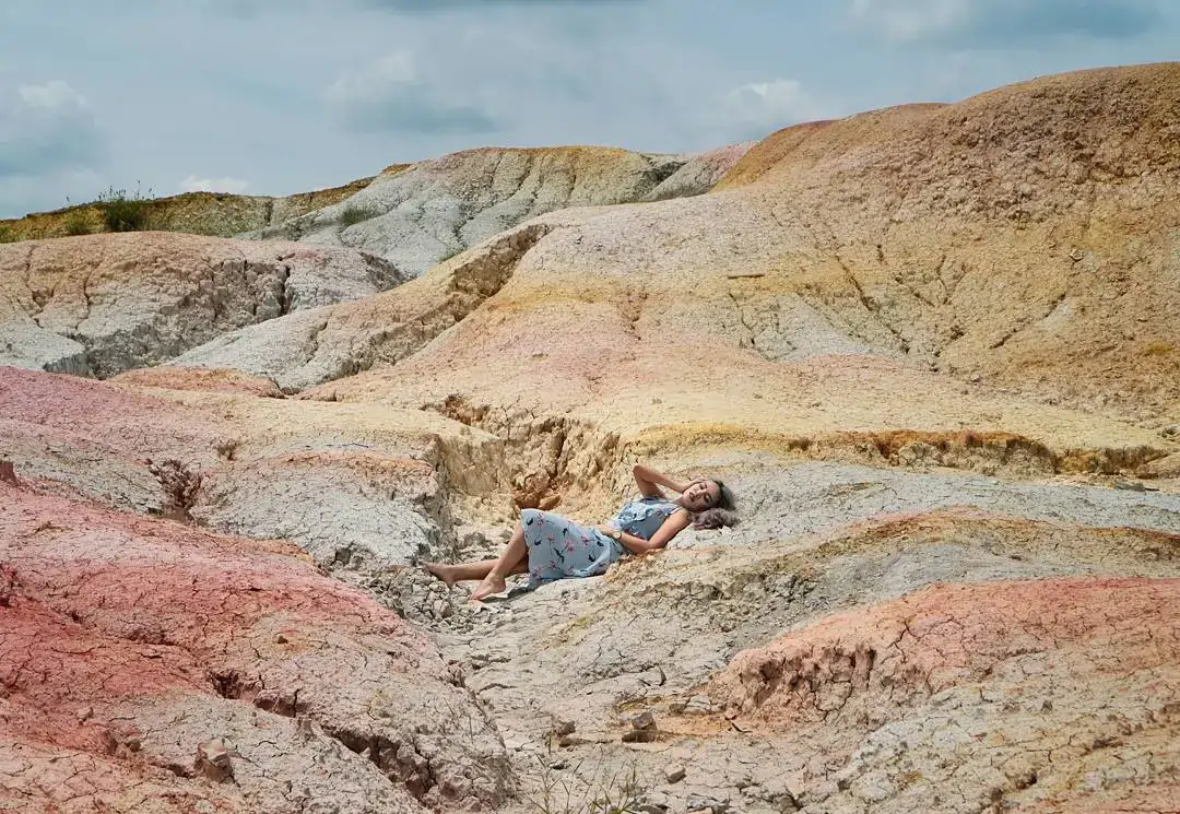 Ini adalah wajah paling ikonik Rainbow Hills. Sebuah punggungan panjang dengan garis kontur yang mengalir. Dari sini kamu bisa menempatkan model sebagai skala manusia yang menonjolkan besarnya lanskap.